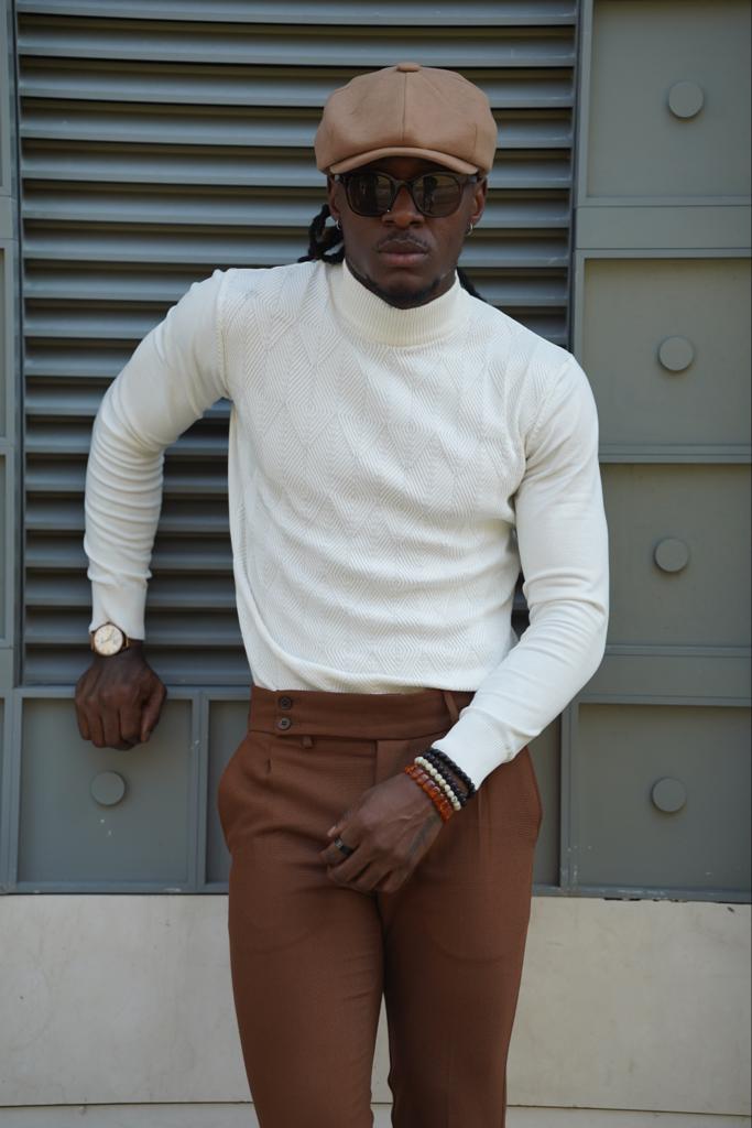 Thread Slim Fit Custom Design Half Collared Beige Turtleneck