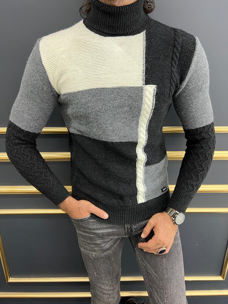 Thread Slim Fit Custom Design Mixed Color Turtleneck