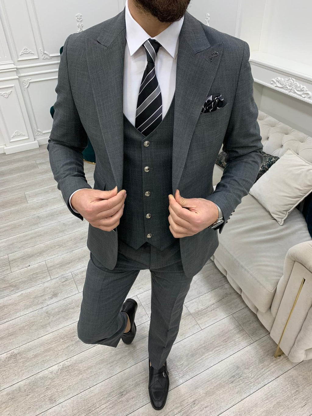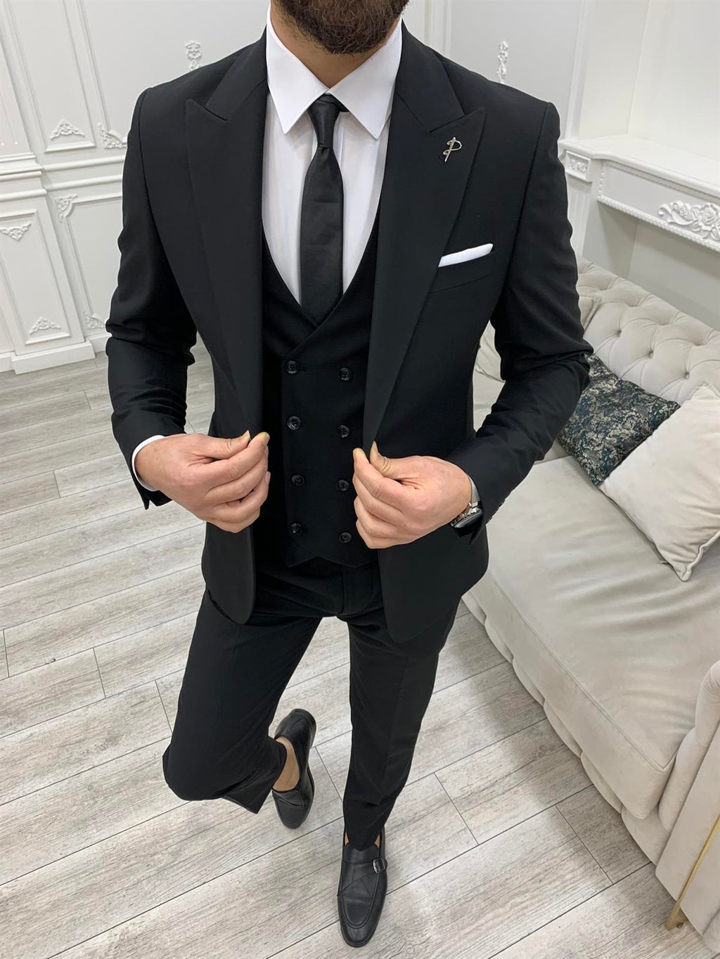 Shagori Navy Blue Slim Fit Peak Lapel Suit