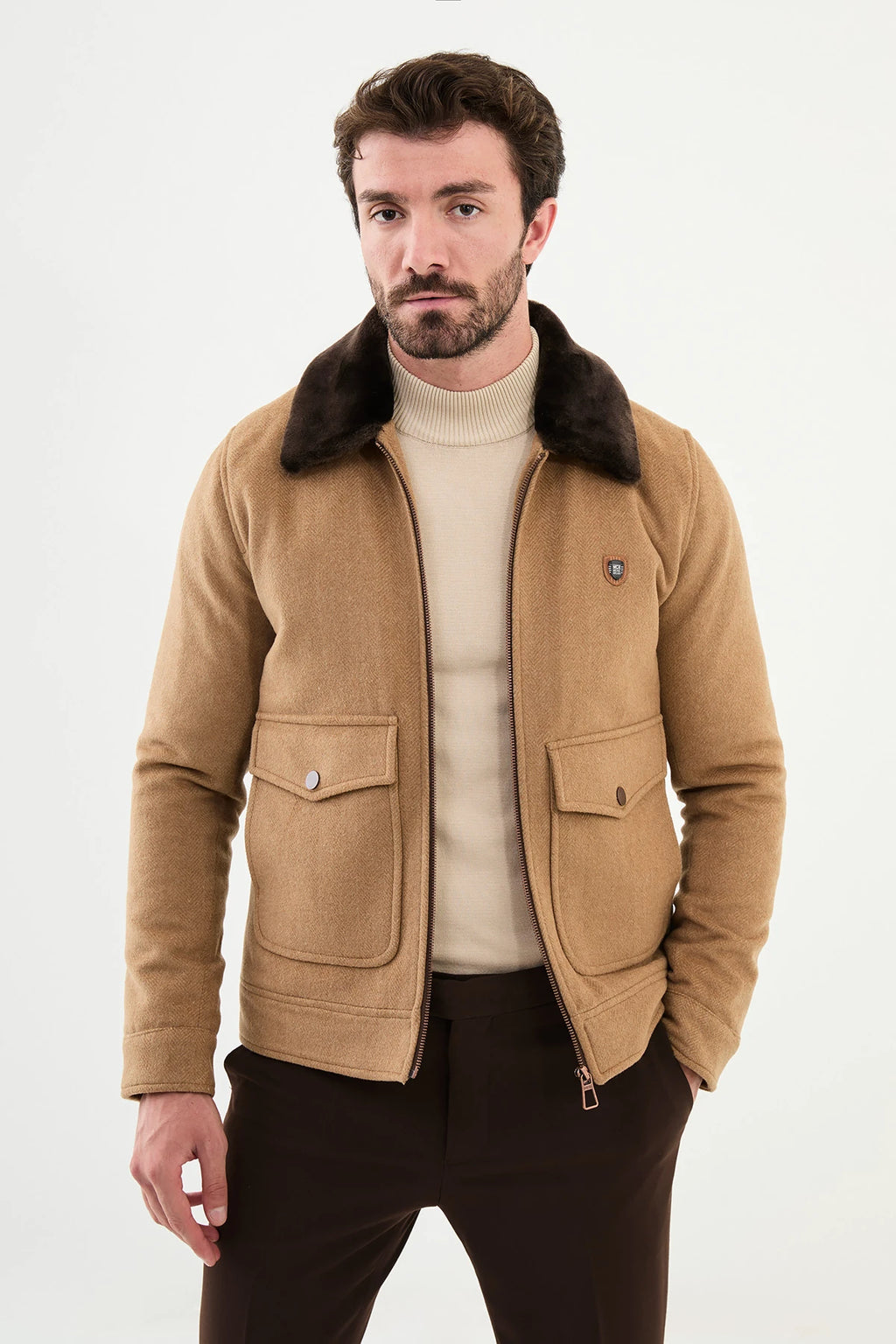 Bojoni Capena Camel Fur Slim Fit Wool Coat