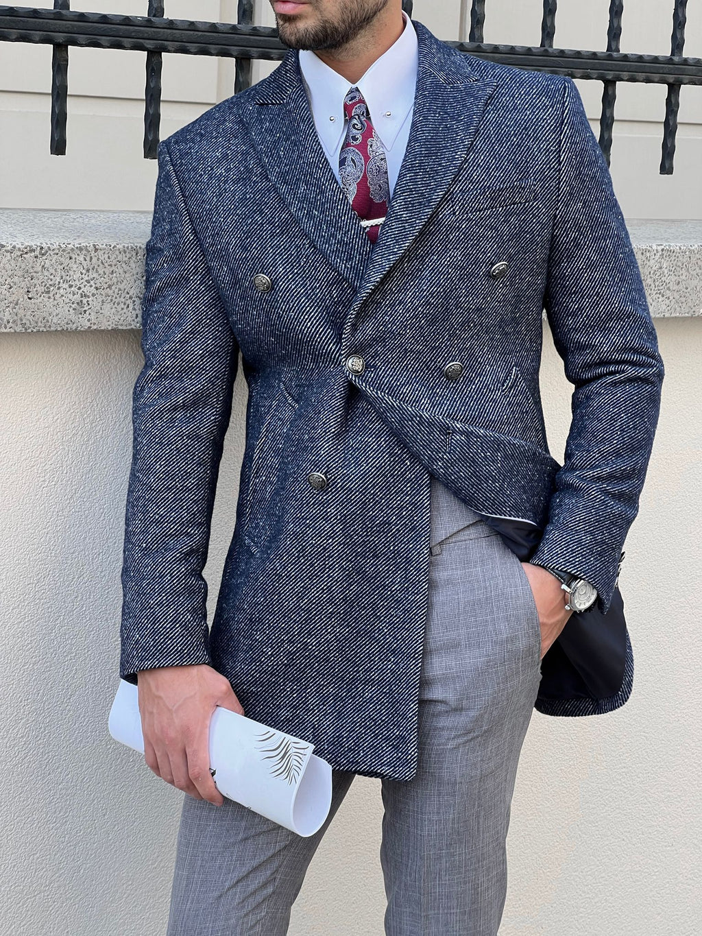 Bojoni Astoria Double Breasted Woolen Marbled Navy Coat