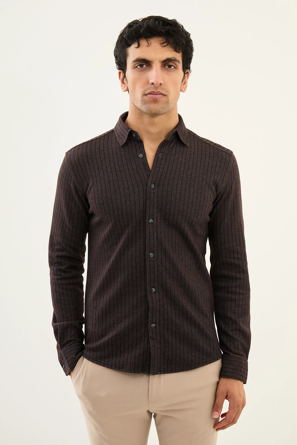 Bojoni Capena Collar Slim Fit Brown Pointed Shirt