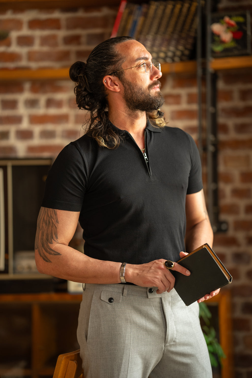 Bojoni Denver Black Slim Fit Zippers Polo Shirt