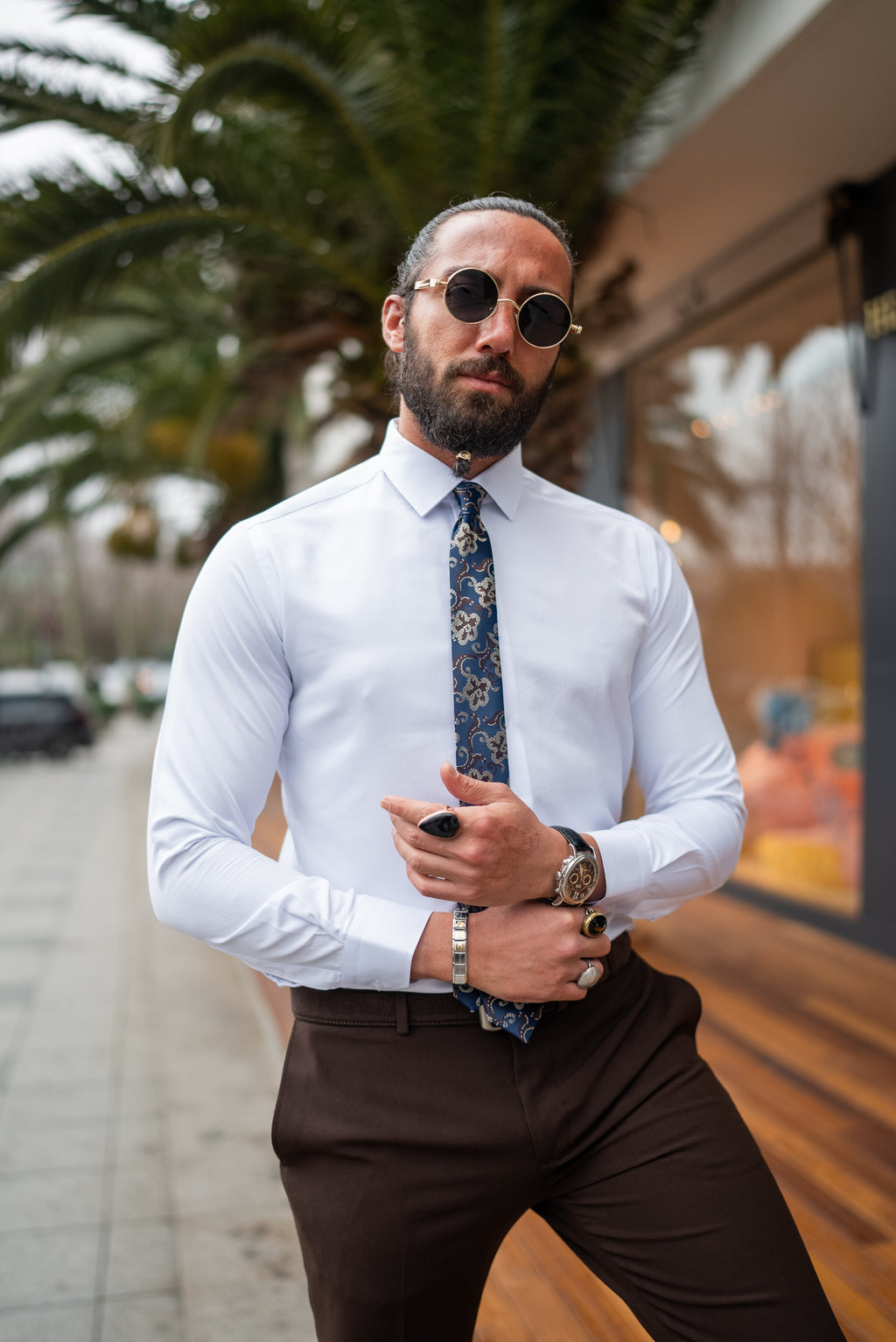 Bojoni Elko White Slim Fit Pin Collar Formal Shirt